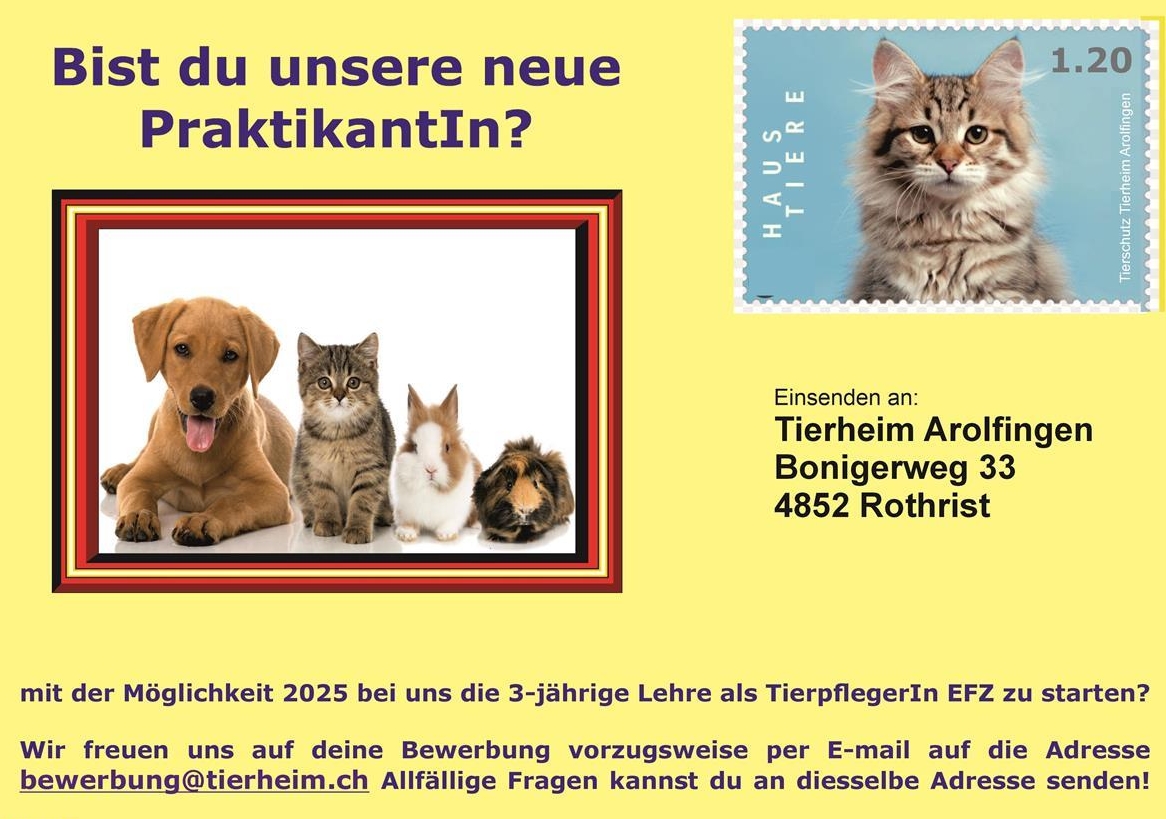 Haustiere zu beginnen. Wir freuen uns auf deine ausführliche Bewerbung.