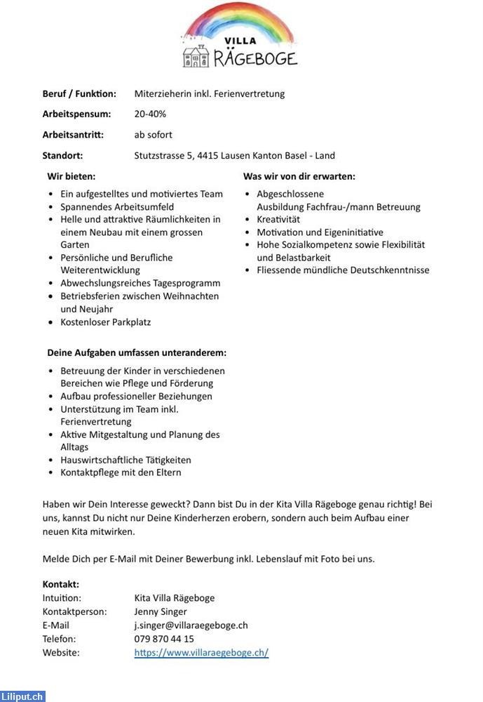 Suchen Miterzieherin 20-40% (inkl. Ferienvertretung)