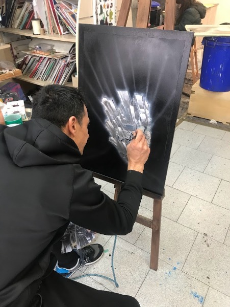 esecuzione dell'illustrazione con aerografo e particolari pennello