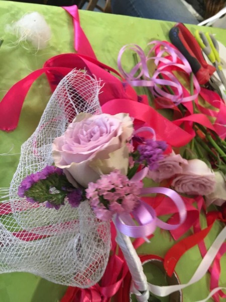 - lavorazione confezionamento floreale su bomboniera