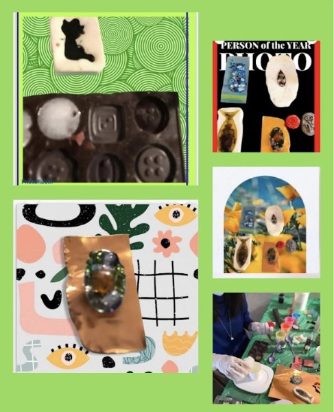 Si sviluppa un lavoro su disegno e si creano vari progetti, resina combinata con parti in metallo e altri materiali come carta, immagini, colori, inoltre si sperimentano le diverse possibilità di uso della resina epossidica per fare gioielli.